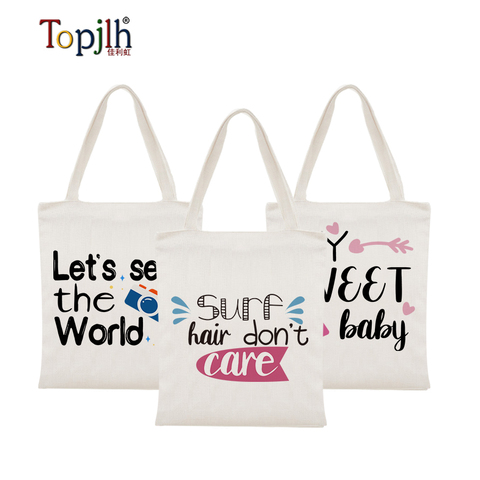 Topjlh סובלימציה ריק לשימוש חוזר טבעי תיק תמונה diy כותנה פשתן שקית קניות עבור קידום מכירות